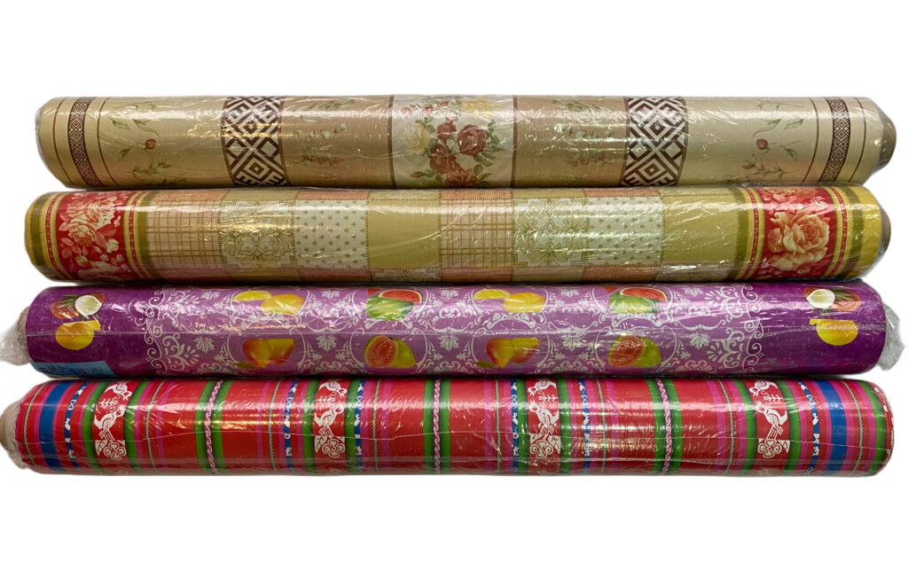 Agrega una nueva alternativa para la confección de manteles y carpetas para mesas, consiste en un espumado de PVC laminado sobre una capa de PVC cristal, con numerosos y delicados diseños.